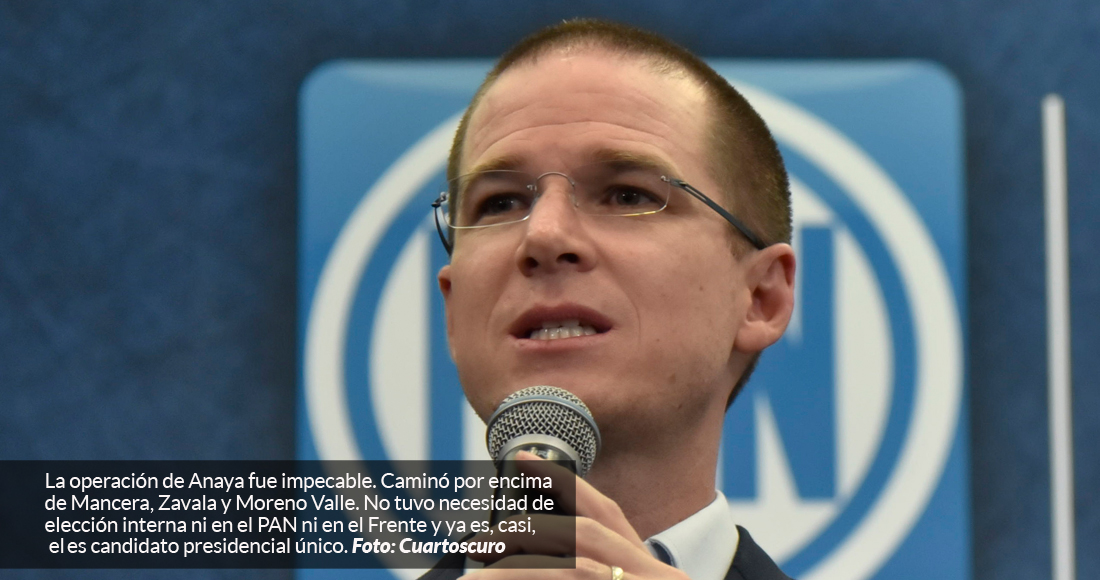 Esta mañana Ricardo Anaya Cortés, hasta este fin de semana presidente del Partido Acción Nacional (PAN), logró brincar sobre todos sus competidores y sin necesidad de aceptar una sola elección interna se convirtió en candidato presidencial único de Por México al Frente, una coalición de partidos que incluye a Movimiento Ciudadano y al de la Revolución Democrática (PRD).