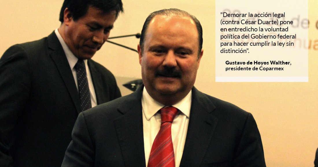 “Demorar la acción legal [contra Duarte] pone en entredicho la voluntad política del Gobierno federal para hacer cumplir la ley sin distinción”, señaló el líder patronal durante un evento realizado en el estado de Morelos.
