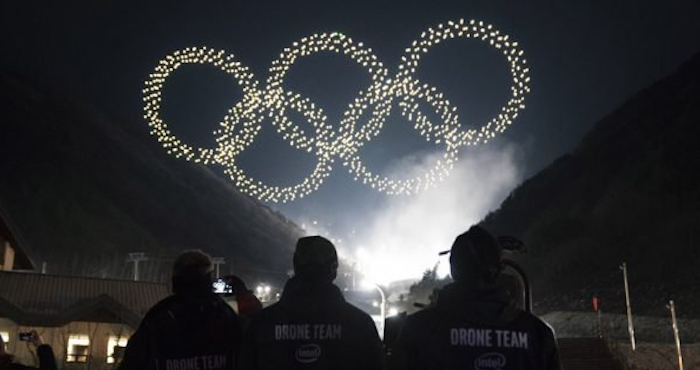 La cadena estadounidense NBC transmitió a los drones durante la inauguración del evento, pero la grabación correspondía a un ensayo realizado semanas antes. No obstante, Intel anunció que habían obtenido el récord mundial por el mayor número de estos aparatos volando simultáneamente.