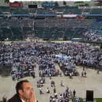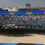 Su participación ocurrió alrededor de las 13:30 horas, cuando ya se había casi vaciado el Estadio Azul, que llegó a estar lleno, debido a que la gente había empezado a llegar tres horas antes y el sol caía a plomo”.