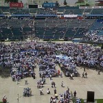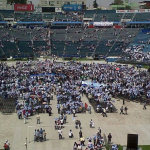 Después de dos horas de que se citó a los militantes del Partido Acción Nacional (PAN) para la toma de protesta de Josefina Vázquez Mota como candidata electa del blanquiazul, dio inicio el evento. Los más de 30 mil asistentes al Estadio Azul aguardaron en pleno rayo de Sol a la precandidata, la cual llegó a las 12:20 horas, pese a que los militantes y simpatizantes fueron citados a las 10:30 horas. De acuerdo con panistas consultados, el evento estaba programado para empezar a medio día, sin embargo, a esa hora todavía seguían llegando cientos de simpatizantes al estadio para apoyar a la candidata. Esto provocó que pasada la 1:20 de la tarde que los militantes que acudieron desde temprana hora provenientes de diversos estados del país, comenzaran a abandonar el inmueble, ya que llevaban horas esperando y el calor era fuerte y tenían que regresar a sus respectivos estados.