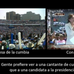 La explanada del Estadio se ve nutrida, pero las gradas, que sirven de marco al evento, se ven vacías y en algún momento se muestra cómo los asistentes dejan sola a su candidata mientras está hablando.