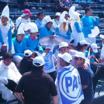 En las imágenes de televisión y en fotos se ve cómo la abanderada panista es abandonada por los militantes que asistieron al acto, justo cuando está dando un discurso.
