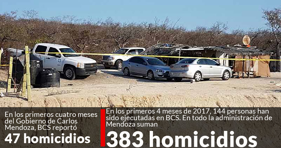 Este 2017 no pinta diferente. Durante los primeros cuatro meses del año, Baja California Sur ha registrado 144 homicidios dolosos, cantidad que ya quintuplicó la del 2016, donde de enero a abril se reportaron 27 homicidios.