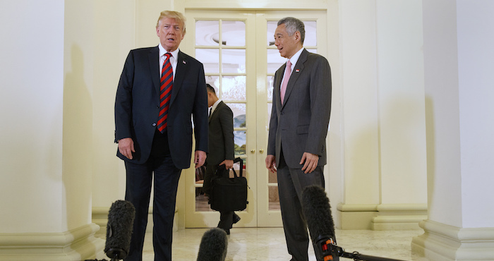 El Presidente de Estados Unidos, Donald Trump, se reúne con el Presidente de Singapur, Lee Hsien Loong. Foto: AP