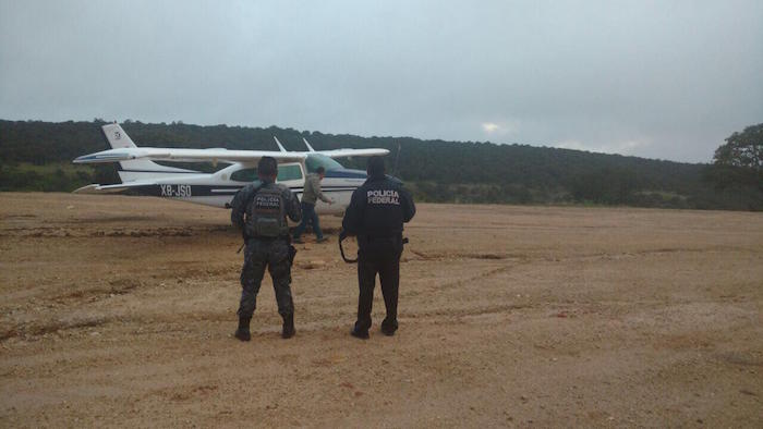 Al arribar al punto se localizó una avioneta tipo Cesna, pero no había tripulantes a bordo o en las inmediaciones, pero en el interior de la aeronave era evidente un cargamento de paquetes envueltos con cinta de color café.