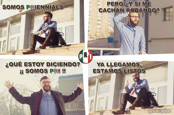 Ciudad de México, 11 de octubre (SinEmbargo).- El término "priennials" se volvió viral en redes sociales, esto luego de que un militante del Partido Revolucionario Institucional (PRI) subiera a su cuenta de Facebook una foto en donde aparece un joven de barba y lentes sentado en una escalera, la imagen está acompañada de la leyenda "No seguimos intereses, nos mueven las causas. SOMOS PRIENNIALS. Ya llegamos, ¿están listos?".