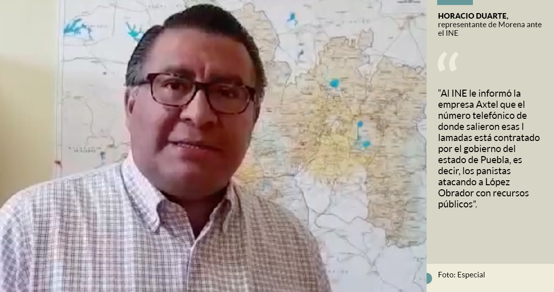 De acuerdo con Duarte Olivares, el Instituto Nacional Electoral (INE) comprobó que ese número el número telefónico de donde salieron las llamadas fue pagado por la Secretaría de Finanzas de Puebla, es decir, acusó, los panistas “atacaron a López Obrador con recursos públicos”.
