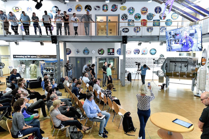 Gerst dio una rueda de prensa desde la ISS para un grupo de periodistas reunidos en el centro de astronautas de la ESA en Colonia (oeste de Alemania).
