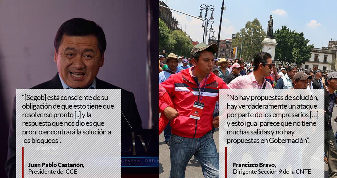 Ante los bloqueos a carreteras y plantones, las organizaciones empresariales como la Confederación Patronal de la República Mexicana (Coparmex), el Consejo Coordinador Empresarial (CCE), la Confederación de Cámaras Nacionales de Comercio, Servicios y Turismo (Concanaco-Servytur), entre otras, presionaron al Gobierno federal para que les pusiera un alto.