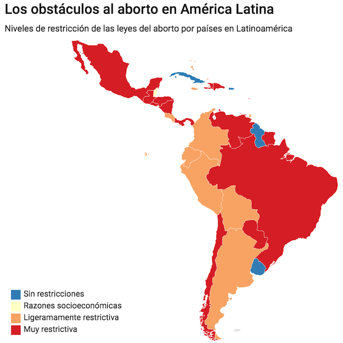 Ciudad de México, 12 de agosto (ElDiario.es/SinEmbargo).– América Latina tiene una gran deuda con sus mujeres. El continente le debe al feminismo un gran cambio de legislación que permita a las personas, de manera libre y segura, acceder al aborto. Y se trata de un grito común que empieza en México y termina en Chile. En todo el continente (incluyendo los países caribeños con más de un millón de habitantes), solo 3 de 49 países cuentan con una legislación que legaliza el aborto. Esto significa que en el 92 por ciento de los países es ilegal esta práctica, aunque en algunos territorios operen excepciones en forma de supuestos.