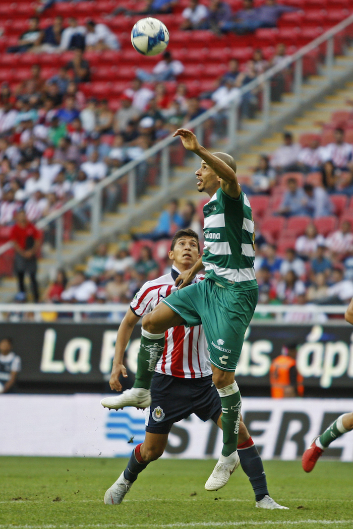 El primer aviso de Santos Laguna: Jonathan Rodríguez hace ver mal a Jair Pereira con un sombrerito y dispara enseguida. Raúl Gudiño salva al Guadalajara al desviar con las piernas, al ‘32. La visita avisa que con las manos vacías no se piensa ir. Falta de Josecarlos Van Rankin por el costado izquierdo de la ofensiva lagunera. Centro de Osvaldo Martínez, pasado a segundo poste. En el uno a uno, Carlos Salcido se equivoca. Falla en la marca el veterano. Jamás se entera que por su espalda, Matheus Doria se adelanta para estirar la pierna y conectar el balón. Al fondo: Santos empata al ‘39.