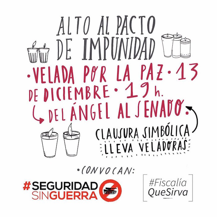 Ciudad de México, 12 de diciembre (SinEmbargo).- Los colectivos #SeguridadSinGuerra y #FiscalíaQueSirva llamaron a la ciudadania a una marcha el día de mañana contra la Ley de Seguridad Interior que partirá desde el Ángel de la Independencia y que tendrá como destino el Senado de la República con el fin de levantar la voz por la paz.