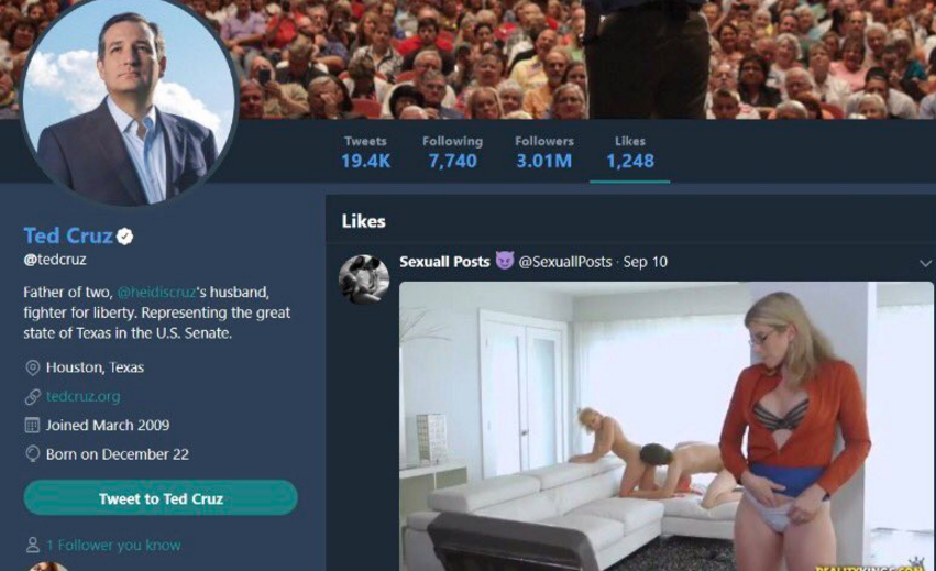 El republicano por Texas y ex candidato presidencial en 2016 aseguró el martes que varios colaboradores tienen acceso a la cuenta y que uno dio accidentalmente “Me gusta” a la imagen.
