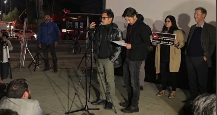 Acompañado por integrantes del movimiento Seguridad sin guerra, el actor ofreció una rueda de prensa en la Cámara alta en la que llamó a la acción porque el país lleva once años -momento en el que inició la llamada guerra contra las drogas emprendida por el expresidente Felipe Calderón- "viviendo en el horror".
