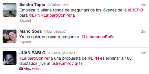 A la misma hora, debido a la fuerza de las otras tendencias, el hashtag #LaIberoConPeña había desaparecido de la lista de Twitter. Sin embargo sí estaba en las tendencias nacionales del sitio trendsmap.com.