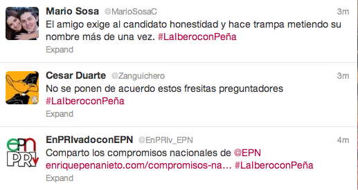 La mañana de este viernes pasado, el candidato presidencial del PRI-PVEM, Enrique Peña Nieto, acaparaba la atención de Twitter luego de conceder su primera entrevista a la periodista Carmen Aristegui, y después por los eventos en la Universidad Iberoamericana, Campus Ciudad de México.