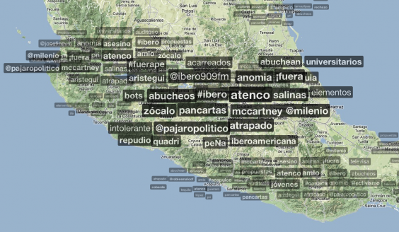 Mientras, el movimiento opositor de Peña Nieto está distribuído en todo el país, como puede verse en los mismos gráficos de Trends Map.