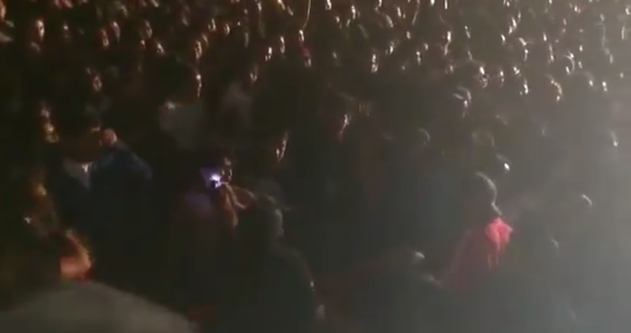 De acuerdo con testigos y un video que circula en redes sociales, varios jóvenes comenzaron a brincarse las gradas a la parte de abajo debido a que el personal de seguridad era muy poco para contener a todos los asistentes y no respetó el acceso controlado.