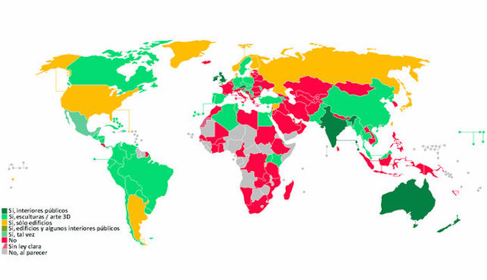 Como el abogado Carlos Sánchez Almeida explica a eldiario.es, en España no hay razones para preocuparse, ya que así lo especifica el artículo 35 de la Ley de Propiedad Intelectual: "Las obras situadas permanentemente en parques, plazas u otras vías públicas pueden ser reproducidas, distribuidas y comunicadas libremente por medio de pinturas, dibujos, fotografías y procedimientos audiovisuales". Básicamente, como añade el profesional, "si está en la calle se puede fotografiar".
