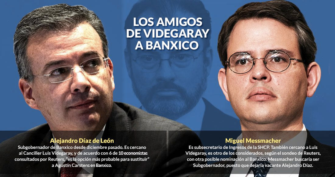 Alejandro Díaz de León, quien fue nombrado en diciembre pasado uno de los cuatro subgobernadores de Banxico, es la opción más probable para ocupar la titularidad de la entidad monetaria, según seis de diez economistas de los principales bancos del país consultados por Reuters. El subgobernador de Hacienda, Miguel Messmacher, tomaría su puesto como subgobernador de Banxico, según los consultados.