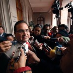 El Gobernador Javier Duarte cuestionado el día de hoy por periodistas. Foto: Cuartoscuro.