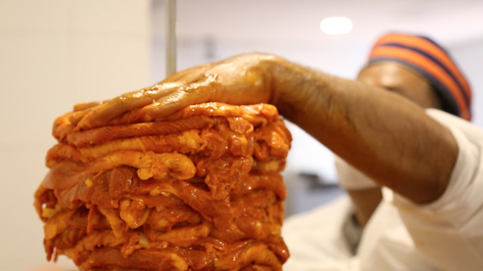 "Aquí nada se desperdicia", dice el pastorero, por lo que se estima que de un trompo de 15 kilos salgan 600 tacos.