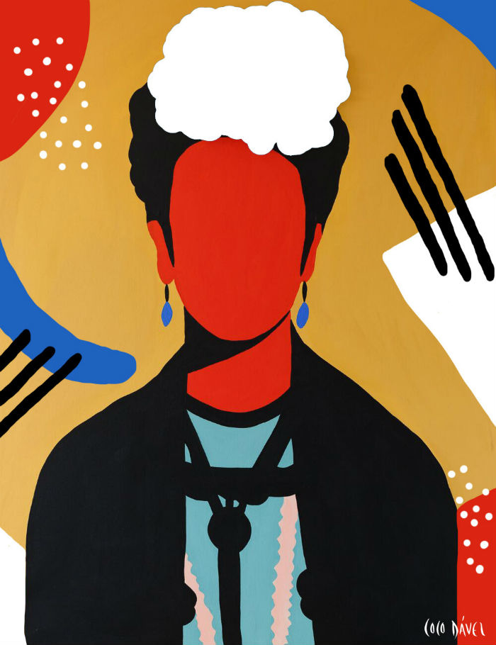 La madrileña, de 26 años, Coco Dávez ha demostrado su interés en la mexicana en numerosas obras, especialmente en la serigrafía sin rostro, pero con mucho color, que le dedica en su serie Faceless.