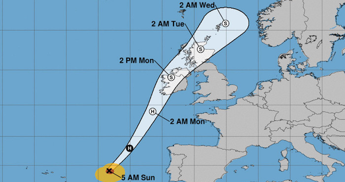 La alerta estará vigente en los condados Galway, Mayo, Clare, Cork y Kerry desde las 9:00 de la mañana del lunes hasta las 3:00 de la madrugada del martes. Serán las horas en las cuales está prevista la llegada de "Ophelia" a las costas occidentales de Irlanda y el Reino Unido.