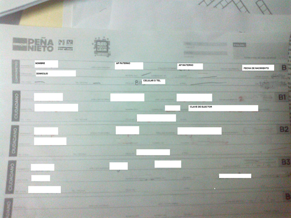 “En las hojas los alumnos tenían que escribir su nombre completo, fecha de nacimiento, domicilio, teléfono o celular, clave de elector, y otras cosas. En cada hoja había espacio para llenar datos de varios estudiantes”, expone el texto.