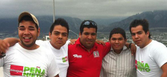 En otra fotografía compartida por dicho alumno, se observa al mismo Miguel Reynoso Flores, quien aparece en medio con otros jóvenes realizando campaña a favor de Enrique Peña Nieto.