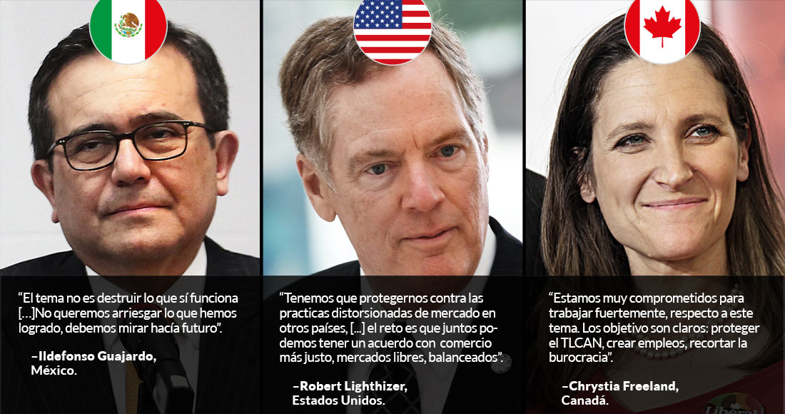Esta mañana, en Washington, arrancó la primera de tres rondas para la renegociación del TLCAN. Los representantes de los tres países que lo conforman, Canadá, Estados Unidos y México, llegaron con sus prioridades establecidas, pero todos con el acuerdo común de que es necesario modernizar el pacto comercial que lleva 23 años.