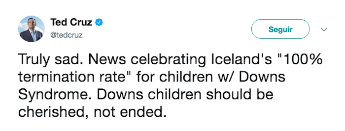 El informe, que tuvo amplísima audiencia en los Estados Unidos, despertó a grupos defensores de la vida. Entre ellos, fue Ted Cruz el que comandó la indignación: "Triste verdad. Las noticias celebrando 'la terminación del 100 por ciento' de los niños con Síndrome de Down. Los niños con Síndrome de Down deben ser queridos, no terminados", indicó en su cuenta de Twitter recibiendo miles de retuits y likes.