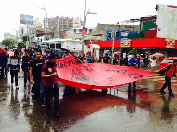 Normalistas, familiares, maestros y organizaciones sociales de todo el país e incluso del extranjero realizan este viernes una megamarcha en Acapulco, Guerrero, para exigir la presentación con vida de los 43 estudiantes desaparecidos el 26 de septiembre pasado en el municipio de Iguala, así como la destitución inmediata del Gobernador Ángel Aguirre Rivero y del Alcalde con licencia y prófugo José Luis Abarca, así como juicio político a los actores materiales e intelectuales de los crímenes de Estado y lesa humanidad.