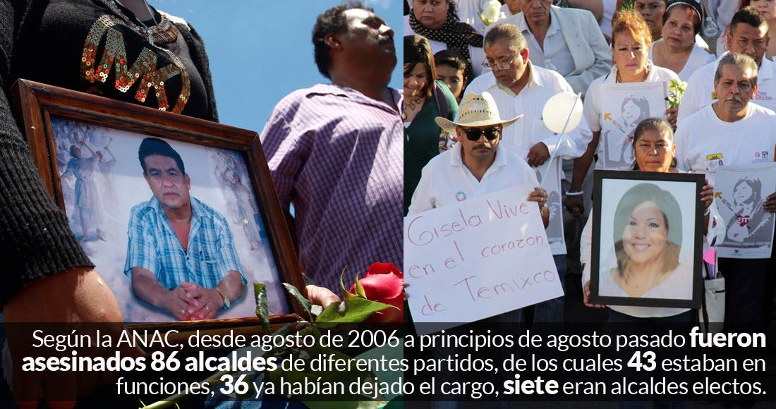 En la última década, México ha registrado más de 80 asesinatos de alcaldes, seis de ellos este año, como José Santamaría Zavala, de Huehuetlán el Grande, en Puebla, ejecutado a tiros cuando viajaba por una carretera rumbo a su domicilio, o Ambrosio Soto, de Pungarabato, en Guerrero, quien estaba amenazado por el crimen organizado.