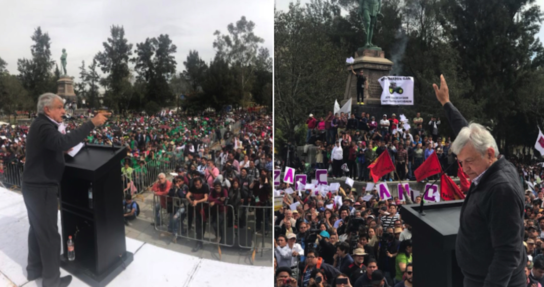 "Vamos a respetar los derechos humanos, porque el próximo Comandante de las Fuerzas Armadas nunca jamás va a dar la orden de reprimir al pueblo de México", dijo, lo que desató el aplauso de la multitud.