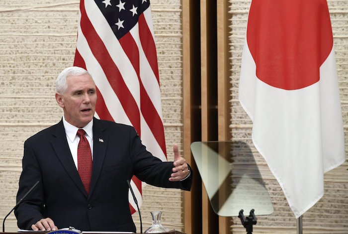 El número dos de la Administración Trump subrayó la fortaleza de la alianza entre EU y Japón, y volvió a advertir que Washington responderá de forma "efectiva y abrumadora" ante cualquier ataque -y en especial a Corea del Norte-, durante la segunda y última jornada de su visita a Japón.