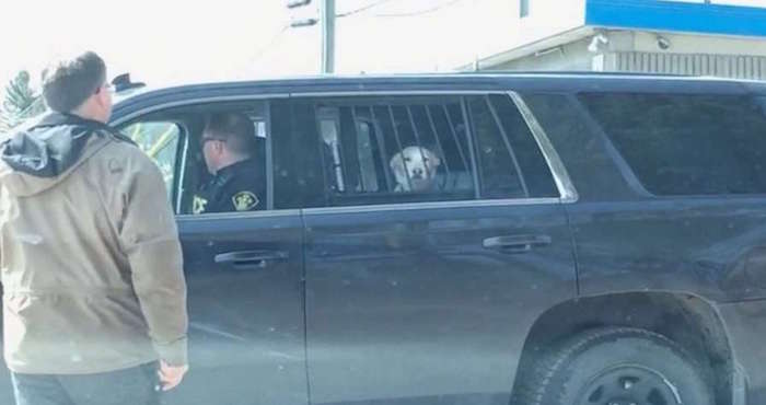 En Twitter se ha compartido miles de veces una fotografía del perro, quien se muestra con una mirada triste, sentado en la parte trasera de una patrulla.