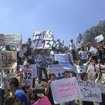 Estudiantes de universidades privadas y públicas, unidas por el movimiento espontáneo #Yosoy132, marchan este mediodía –con sus credenciales de sus escuelas en mano– a las instalaciones de Televisa Santa Fe y Televisa San Ángel, en la Ciudad de México, para pedir libertad de expresión y el freno a la parcialidad con la que esa televisora ha manejado la información en favor del candidato del PRI a la Presidencia, Enrique Peña Nieto, y en contra de los alumnos de la Universidad Iberoamericana, a los que se ha calificado de “porros” y “manipulados” por fuerzas de la izquierda.