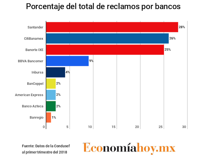 Entre enero y marzo de 2018 Santander fue el banco con el mayor número de reclamaciones en comercio electrónico con un total de 286 mil 277 por un monto de 156 millones 655 mil 878 pesos, el monto de reclamaciones concentra el 28 por ciento del total de los reclamos de dicho periodo.