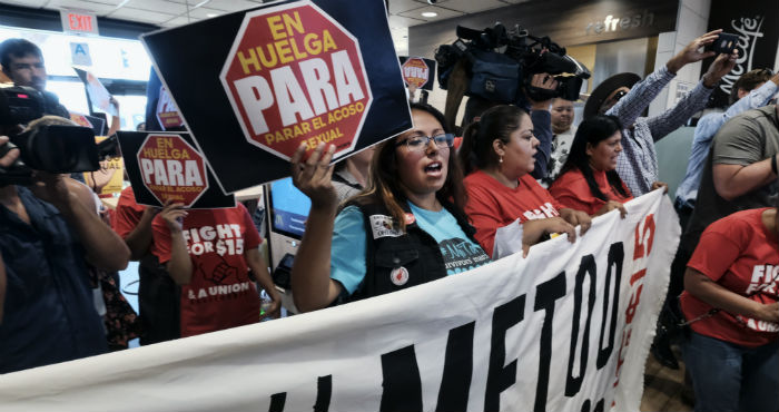 Una manifestante de Chicago portó un cartel con el texto "El acoso sexual ya no entra en el menú".