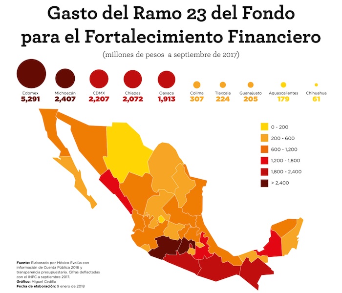 La entidad que más dinero recibió del Fortafin fue el Estado de México: 5 mil 300 millones de pesos en 2017.