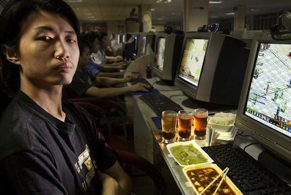 Shashi Kanth, un trabajador de call center con su comida diaria en su oficina en el centro de atención telefónica de AOL en Bangalore, India. Kanth mide 1.73 m y pesa 55 kg. Como muchos de los miles de trabajadores de call center en la India, se alimenta de comidas rápidas, golosinas y café para soportar las largas noches que pasa hablando con los occidentales sobre diversas cuestiones técnicas y problemas de facturación. Inicialmente se introdujo en el mundo del call center para pagar facturas médicas y escolares, pero después de dos años se encuentra todavía allí sin saber cuándo va a volver a sus estudios profesionales. Foto: Peter Menzel