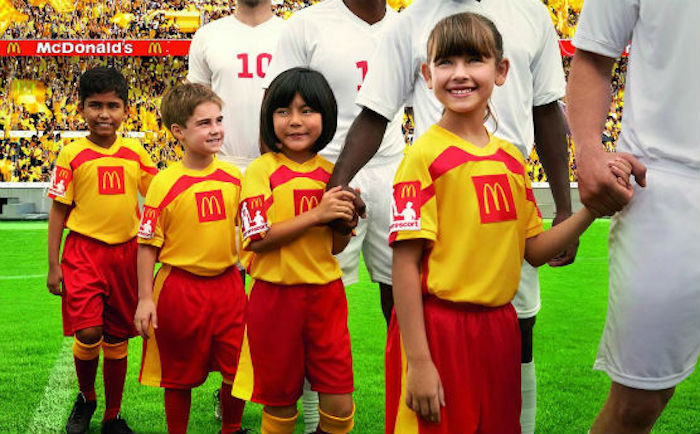 Por otro lado, otros niños, un grupo más selecto, cumplirían su sueño de salir a la cancha de la Copa del Mundo de la mano de sus estrellas, de los jugadores de las selecciones nacionales. Gracias al programa de Player Escort de McDonald´s, también patrocinador de la Copa Mundial, aunque no con la calidad de socio de FIFA que tiene Coca Cola, se “permite a los niños del mundo la posibilidad de entrar a la cancha de la mano de sus héroes del futbol”. Pudieron observar como los niños que acompañaron a las selecciones en los primeros partidos en Rusia llevaban en las camisetas el logo de McDonald´s, cómo atrás de cada entrevista a jugadores y entrenadores estaban, entre otros logos, los de Coca Cola y McDonald´s, como alrededor de todo el campo aparecían en las vallas circundantes los logos de estas empresas. Investigaron a esta empresa y se dieron cuenta que era la mayor vendedora de comida rápida alrededor del mundo y la que tenía las estrategias más efectivas para atraer a los niños al consumo de sus productos, utilizando un payaso como símbolo, introduciendo en sus espacios de venta juegos infantiles, convirtiéndose en la empresa que más juguetes distribuye en el mundo a través de su Cajita Feliz. Se sorprendieron al saber que McDonald´s ya se había retirado del patrocinio de los Juegos Olímpicos por las protestas en contra, por la incongruencia que un evento deportivo promoviera el consumo de alimentos no saludables. La mayor empresa de comida rápida había participado en el patrocinio de los Juegos Olímpicos por 41 años y se canceló el contrato antes de que llegara a su término en el 2020. Pero ahí estaba McDonald´s, seguía como patrocinador de la Copa del Mundo.
