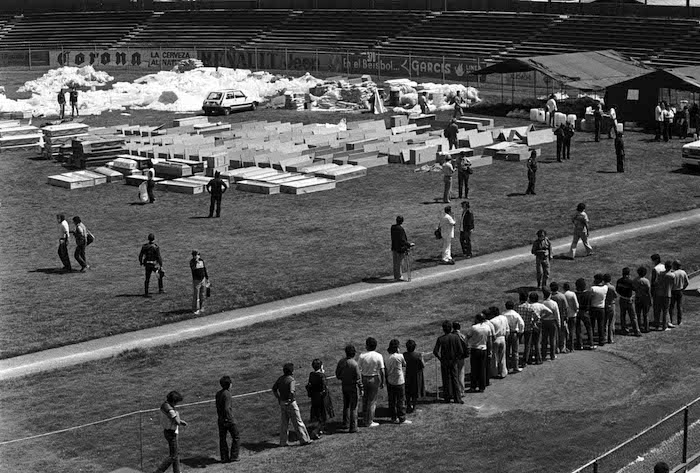 El parque de béisbol del seguro social, que hoy es conocido como Parque Delta, fue utilizado para recibir centenares de cuerpos en espera de ser identificados por sus familiares.