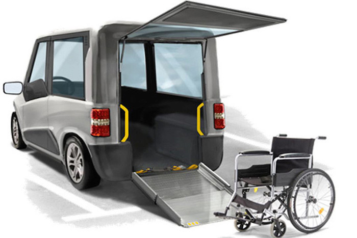 En cuanto al diseño exterior será un coche compacto para dos personas con un baúl grande con capacidad para una silla de ruedas. La base del motor del Neuromóbil será una plataforma sin transmisión con motores eléctricos integrados en las ruedas.