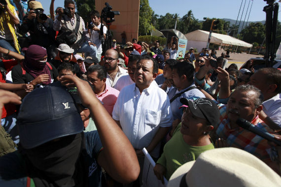 Ciudad de México, 19 de diciembre (SinEmbargo).– Profesores de la Coordinadora Estatal de Trabajadores de la Educación de Guerrero (CETEG), estudiantes normalistas y manifestantes retuvieron sobre la avenida costera Miguel Alemán el vehículo en el que se transportaba el Alcalde de Acapulco, Luis Walton Aburto.
