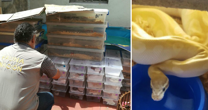 Los agentes que incautaron a estos animales encontraron además 19 huevos de serpiente en el domicilio particular allanado. Los animales estaban metidos en grandes cajas transparentes apiladas que lucían etiquetas en las que se especificaba su tamaño, peso y otras características, según se pudo apreciar en imágenes difundidas por canales de televisión.