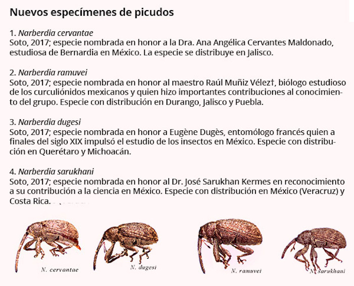 “En México, según la literatura especializada en curculiónidos, cita que se conoce menos de 50 por ciento de los curculiónidos mexicanos, es importante contribuir a la ciencia y que la ciencia conozca cuáles son las especies que aún se desconocen. Es ir aportando al conocimiento de la fauna, en este caso de los invertebrados, además se da información de la distribución de las especies, que también este tipo de conocimiento es muy limitado en México”, señaló el científico Soto Hernández.