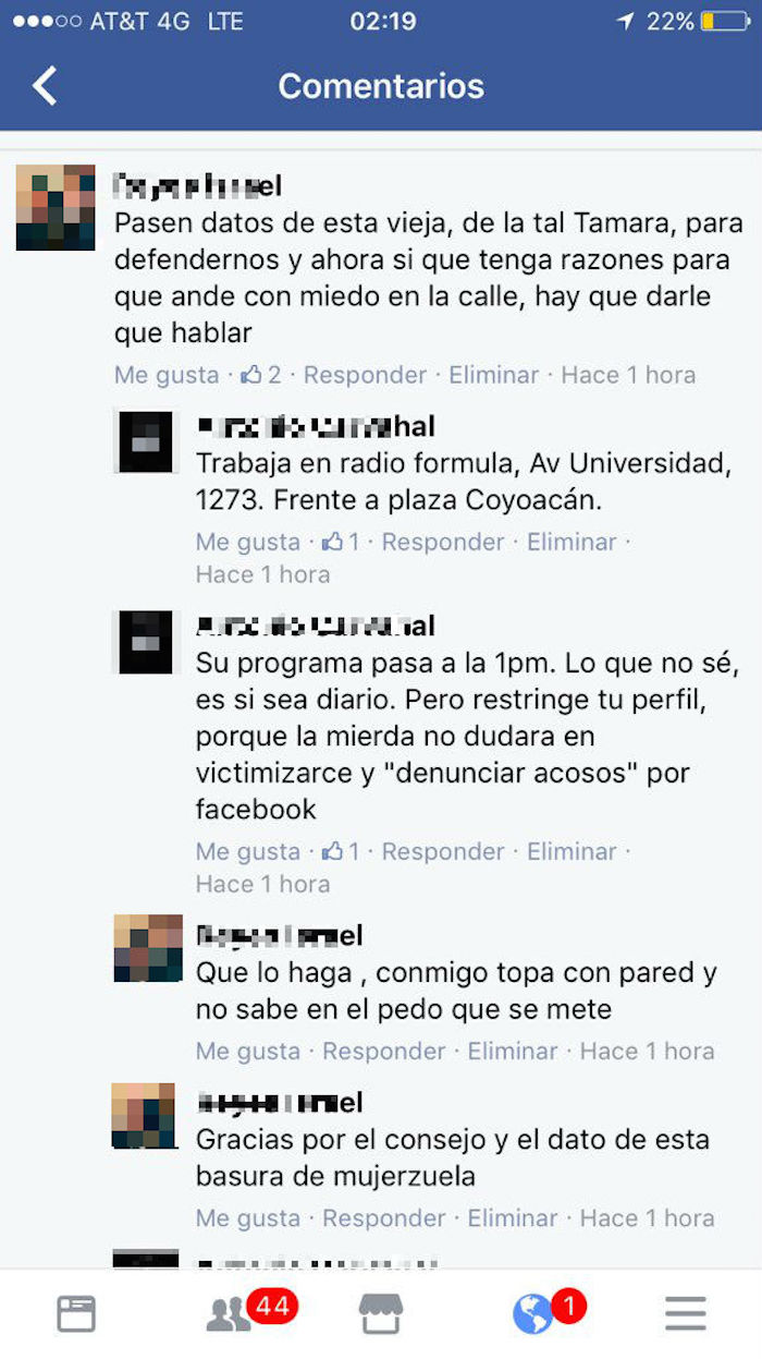 Tan sólo en dos horas, la organización en defensa de la libertad de expresión documentó 634 menciones en la cuenta de Twitter de la periodista, "muchas de las cuales están compuestas por un lenguaje violento, humillante y amenazante", manifestó Artículo 19.